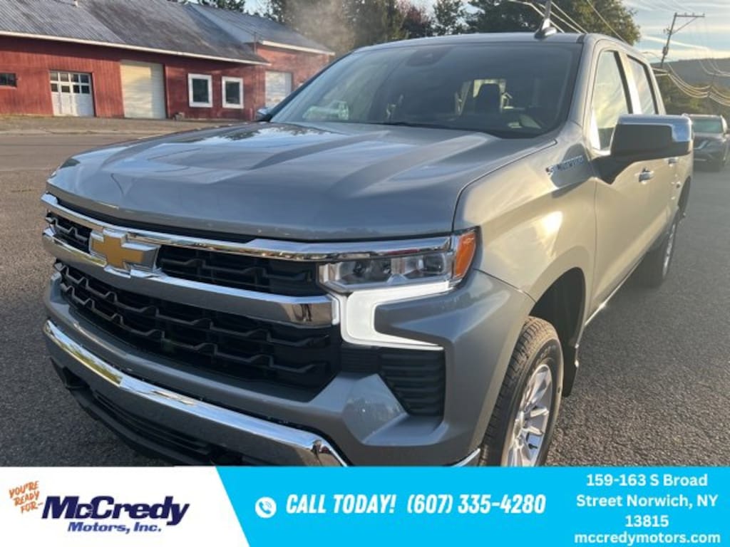 Sterling Gray Metallic 2026 Chevrolet Silverado 1500 LT LT1 4WD 10-Speed Automatic EcoTec3 5.3L V8 10-Speed Automatic, 4WD, Black Cloth, 10-Way Power Driver Seat w/Lumbar, 12.3 Multicolor Reconfigurable Digital Display, 120-Volt Bed Mounted Power Outlet, 120-Volt Interior Power Outlet, 170 Amp Alternator, 2 USB Data Ports, 220 Amp Alternator, 3.23 Rear Axle Ratio, 4-Wheel Disc Brakes, 40/20/40 Front Split-Bench Seat, 6 Speakers, 6-Speaker Audio System, ABS brakes, Air Conditioning, All-Star Edition, All-Weather Floor Liner (LPO), Alloy wheels, AM/FM radio: SiriusXM with 360L, Apple CarPlay/Android Auto, Auto High-beam Headlights, Auto-Locking Rear Differential, Automatic Emergency Braking, Automatic temperature control, Auxiliary External Transmission Oil Cooler, Bluetooth® For Phone, Brake assist, Bumpers: chrome, Chevytec Spray-On Black Bedliner, Chrome Mirror Caps, Cloth Seat Trim, Color-Keyed Carpeting Floor Covering, Compass, Convenience Package, Deep-Tinted Glass, Delay-off headlights, Driver door bin, Driver vanity mirror, Dual front impact airbags, Dual front side impact airbags, Dual Rear USB Ports (Charge Only), Dual-Zone Automatic Climate Control, Electric Rear-Window Defogger, Electronic Cruise Control, Electronic Stability Control, Electronic Transmission Range Selector Shifter, Emergency communication system: OnStar, External Engine Oil Cooler, EZ Lift Power Lock & Release Tailgate, Floor Mounted Center Console, Following Distance Indicator, Forward Collision Alert, Front anti-roll bar, Front Bucket Seats, Front Center Armrest w/Storage, Front dual zone A/C, Front Frame-Mounted Black Recovery Hooks, Front License Plate Kit, Front Pedestrian Braking, Front reading lights, Front Rubberized Vinyl Floor Mats, Front wheel independent suspension, Fully automatic headlights, HD Rear Vision Camera, Heated door mirrors, Heated Driver & Front Outboard Passenger Seats, Heated front seats, Heated Power-Adjustable Outside Mirrors, Heated Steering Wheel, Heated steering wheel, Hitch Guidance, Illuminated entry, Inside Rear-View Mirror w/Tilt, Integrated Trailer Brake Controller, IntelliBeam Automatic High Beam On/Off, Keyless Open & Start, Lane Keep Assist w/Lane Departure Warning, LED Cargo Area Lighting, Low tire pressure warning, Manual Tilt/Telescoping Steering Column, Occupant sensing airbag, OnStar Services Capable, Outside temperature display, Overhead airbag, Overhead console, Panic alarm, Passenger door bin, Passenger vanity mirror, Power door mirrors, Power driver seat, Power Front Windows w/Driver Express Up/Down, Power Front Windows w/Passenger Express Down, Power Rear Windows w/Express Down, Power steering, Power windows, Preferred Equipment Group 1LT, Premium audio system: Chevrolet Infotainment 3 Premium, Protection Package, Radio data system, Radio: Chevrolet Infotainment 3 Premium System, Rear 60/40 Folding Bench Seat (Folds Up), Rear reading lights, Rear Rubberized-Vinyl Floor Mats, Rear step bumper, Rear Wheelhouse Liners, Rear window defroster, Remote keyless entry, Remote Start Package, Remote Vehicle Starter System, Security system, SiriusXM w/360L Trial Subscription, Speed control, Speed-sensing steering, Split folding rear seat, Standard Suspension Package, Standard Tailgate, Steering Wheel Audio Controls, Steering wheel mounted audio controls, Tachometer, Teen Driver, Telescoping steering wheel, Theft Deterrent System (Unauthorized Entry), Tilt steering wheel, Tire Pressure Monitoring System, Traction control, Trailering Package, Trip computer, Variably intermittent wipers, Voltmeter, Wheels: 17 x 8 Bright Silver Painted Aluminum, Wi-Fi Hot Spot Capable, Wireless Charging, Wrapped Steering Wheel, 10-Speed Automatic, 4WD, Black Cloth.