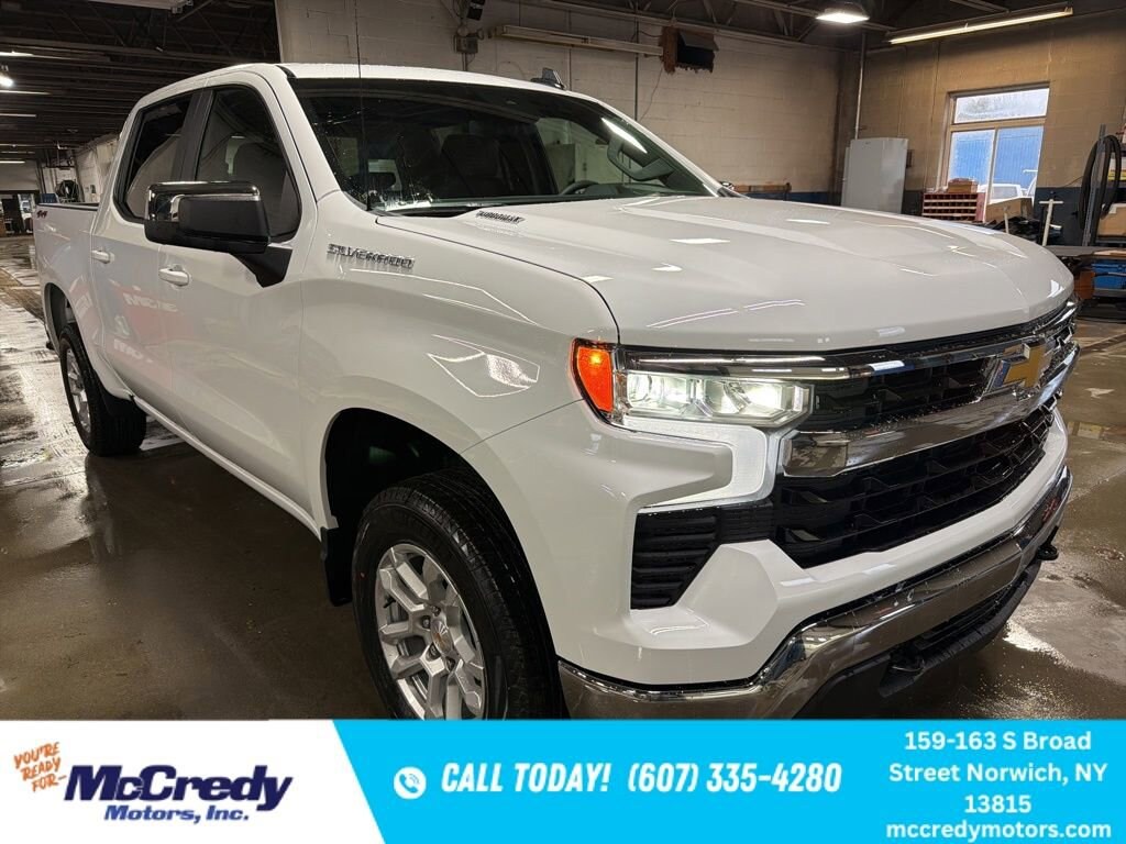 Summit White 2026 Chevrolet Silverado 1500 LT 4WD 8-Speed Automatic 2.7L I4 Turbocharged DOHC 16V LEV3-SULEV30 310hp 8-Speed Automatic, 4WD, Jet Black Cloth.